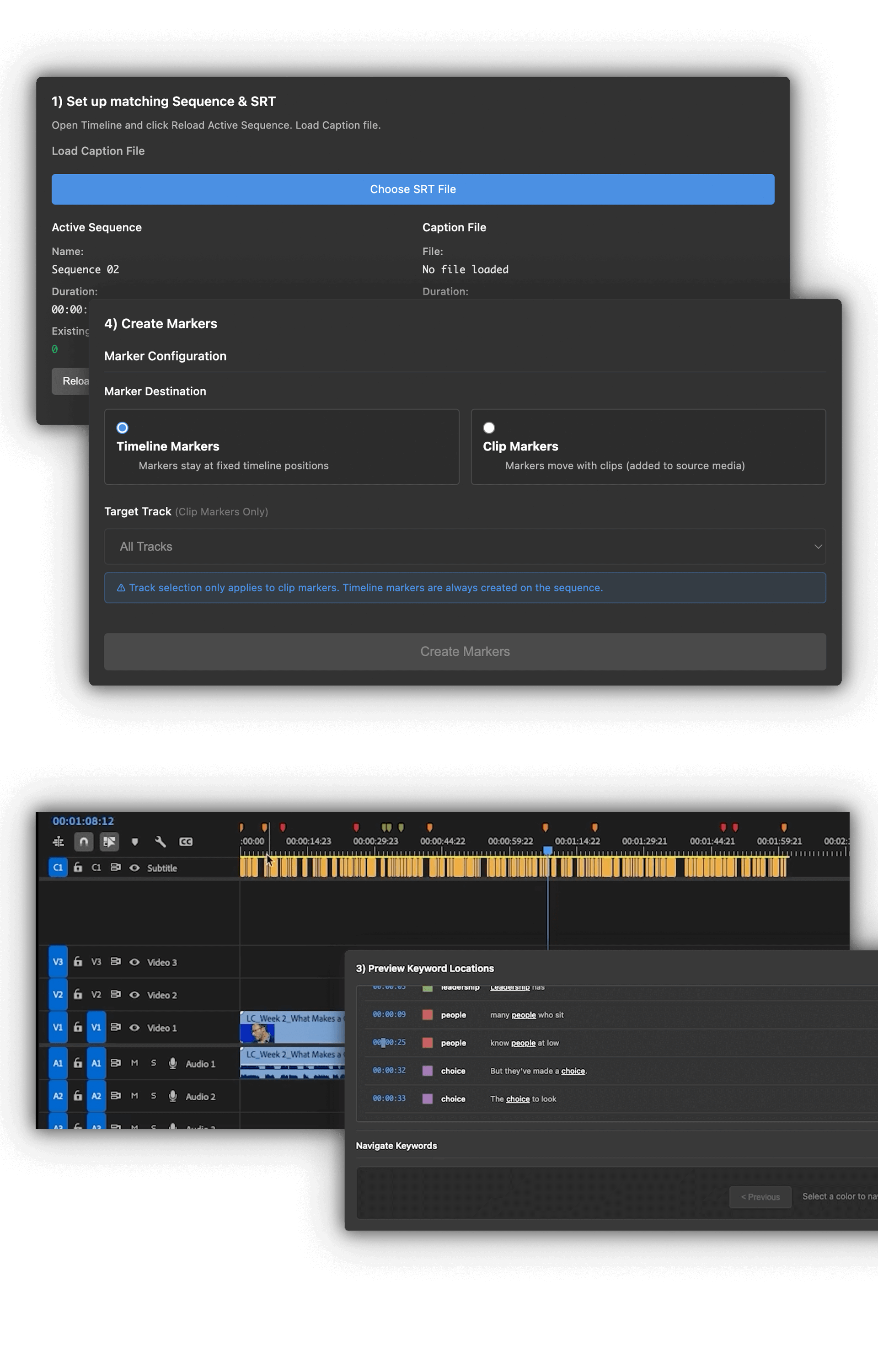 Standard search tools are temporary. Keyword Marker is permanent. Whether you're looking for specific action cues across 50 takes or mapping out topic clusters in a feature-length documentary, this plugin creates a visual map of your story that stays with you until the final export. Stop wasting time searching your own footage.